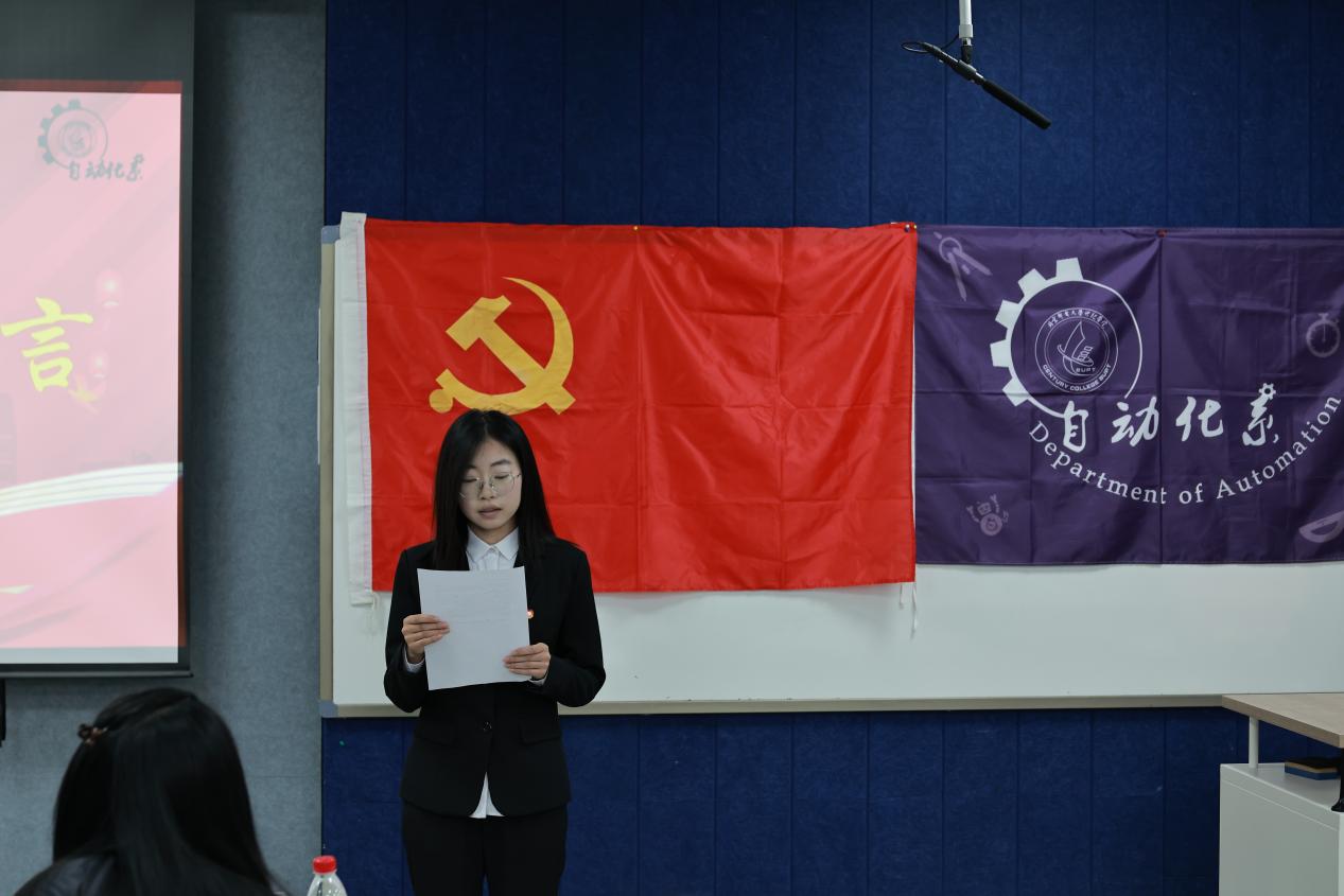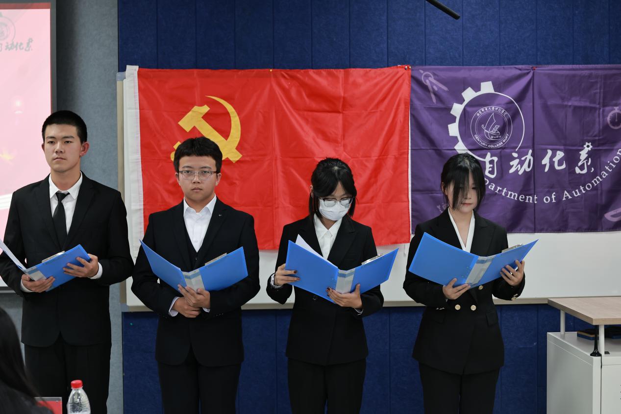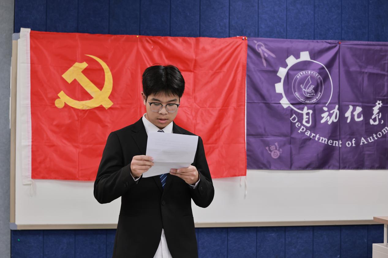 自动化系初级党校暨红色讲堂到现在已有十届成功结业,第十届优秀学员代表王文豪学长,他回顾了自身在红色讲堂的学习经历,提及通过重温峥嵘岁月、感悟革命先辈故事,不仅补足精神之钙,更坚定了“听党话、跟党走”的信念,并将其融入日常工作生活。同时,他寄语新一届学员们要做到多听多思、学用结合,将红色精神转化为奋进动力。新一届学员代表张宁宁,王世林,姬云喆,郭索诚听完上一届学员代表分享后,更深刻体会到红色讲堂作为学习历史、汲取精神力量平台的重要意义,也明晰了传承红色基因的责任,他们用语言和情感向新一届学员们传递了红色力量。