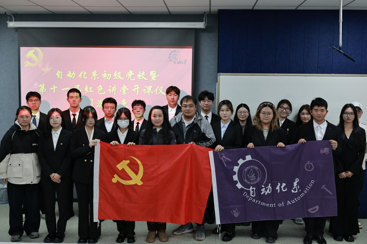 为深入推进青年思想政治引领,筑牢理想信念根基,近日,自动化系初级党校开班典礼暨第十一期红色讲堂开课仪式在学思楼204教室举办,自动化系学生党支部书记徐莉莉、支部委员袁未与第11期党校学员共同参加。