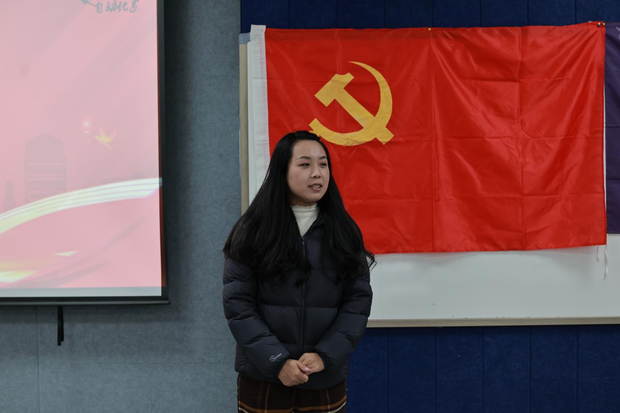 最后,支部书记徐莉莉老师鼓励大家,青年学习愿将自己的人生与党和国家民族命运联系在一起的选择是值得肯定的,党带领全国各族人民团结奋进走向富强我党能够坚守初心的必然结果,也是我党先进性的集中体现。各位同学要坚定理想信念,明确自己的初心与使命。通过学习能够掌握党的基本理论和基本知识,加强党性锻炼,增强党员意识,将理想融入生活,时刻以一名共产党员的标准严格要求自己,争起表率、争做先锋,用实际行动争取早日加入到这个光荣而又神圣的队伍。