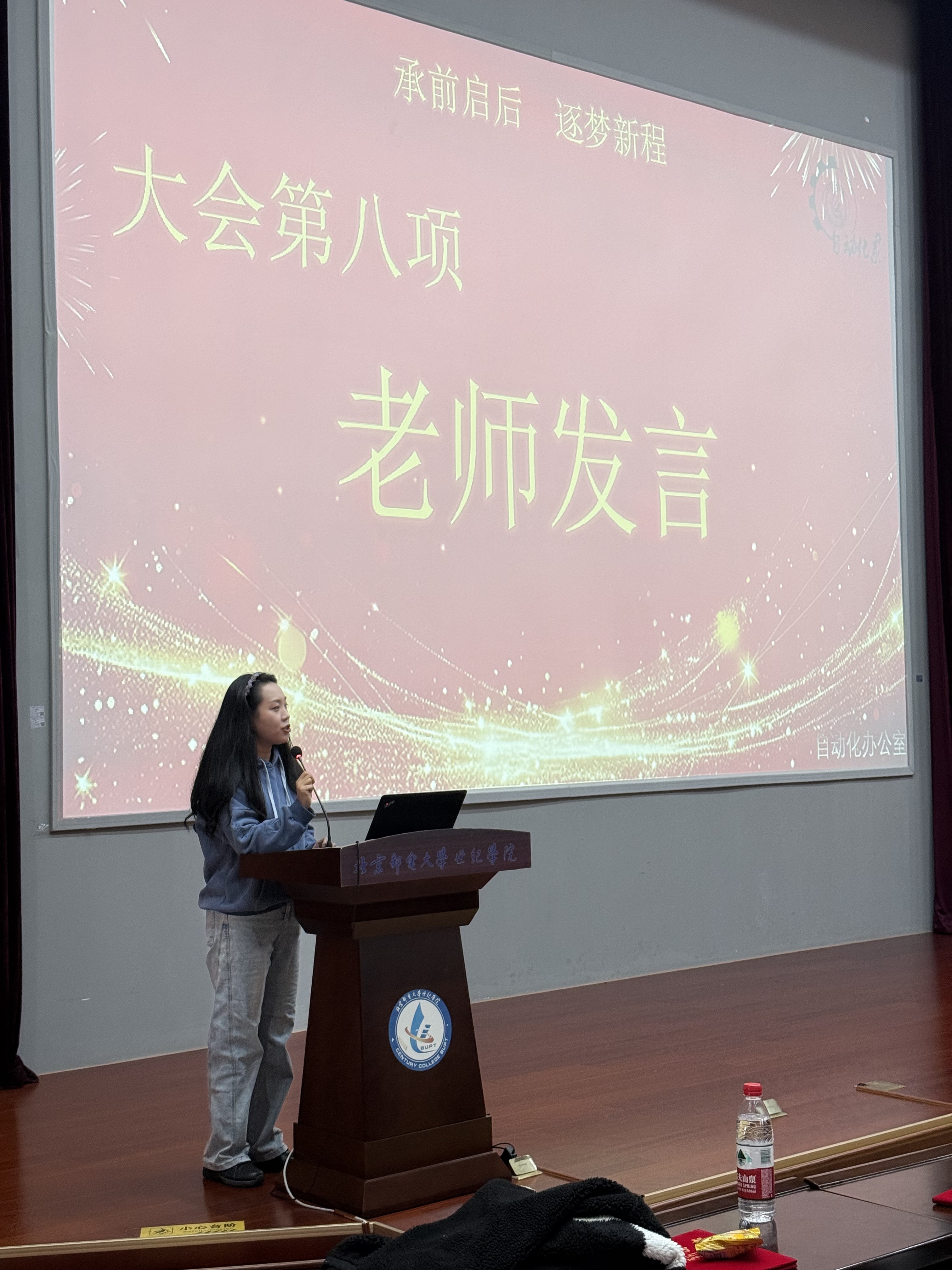 2025年10月15日,北京邮电大学世纪学院自动化系第二十届团学组织换届大会在图书馆报告厅三楼隆重召开,自动化系团总支书记徐莉莉、辅导员袁未、田佳欣老师,第十九届、第二十届团学组织齐聚一堂,共同见证这一承前启后、继往开来的重要时刻。